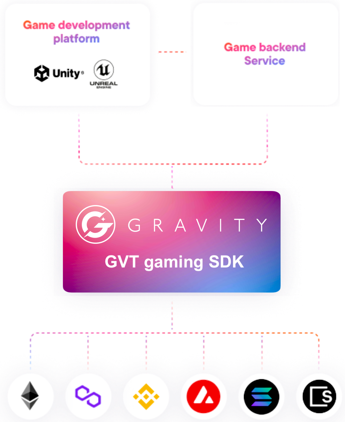 **SDK:** Gravity team has been developing the **GRAVITY SDK** for the last 2 years to enable any game developer to integrate all the tools and features needed to successfully publish and run an amazing and superior game. Millions of users and devices around the world are currently playing the Unity and Unreal engine based games that our SDK supports. The **GRAVITY SDK** adds all the necessary Web3 functionality to lower the barrier to entry for any developer looking to bring their games to Web3 without any prior blockchain experience and regardless of their skill level. With the **Gravity SDK**, developers and publishers will be able to attract a much wider variety of high-quality games, which will significantly contribute to the growth of the blockchain gaming ecosystem.